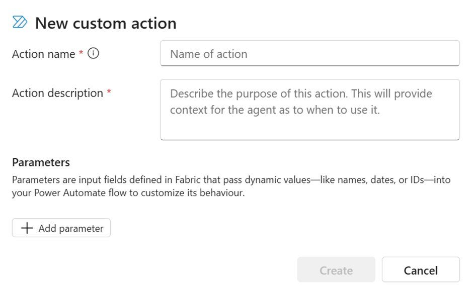Save the flow and return to the Fabric portal. Your action is now fully configured and ready to be triggered by the agent.