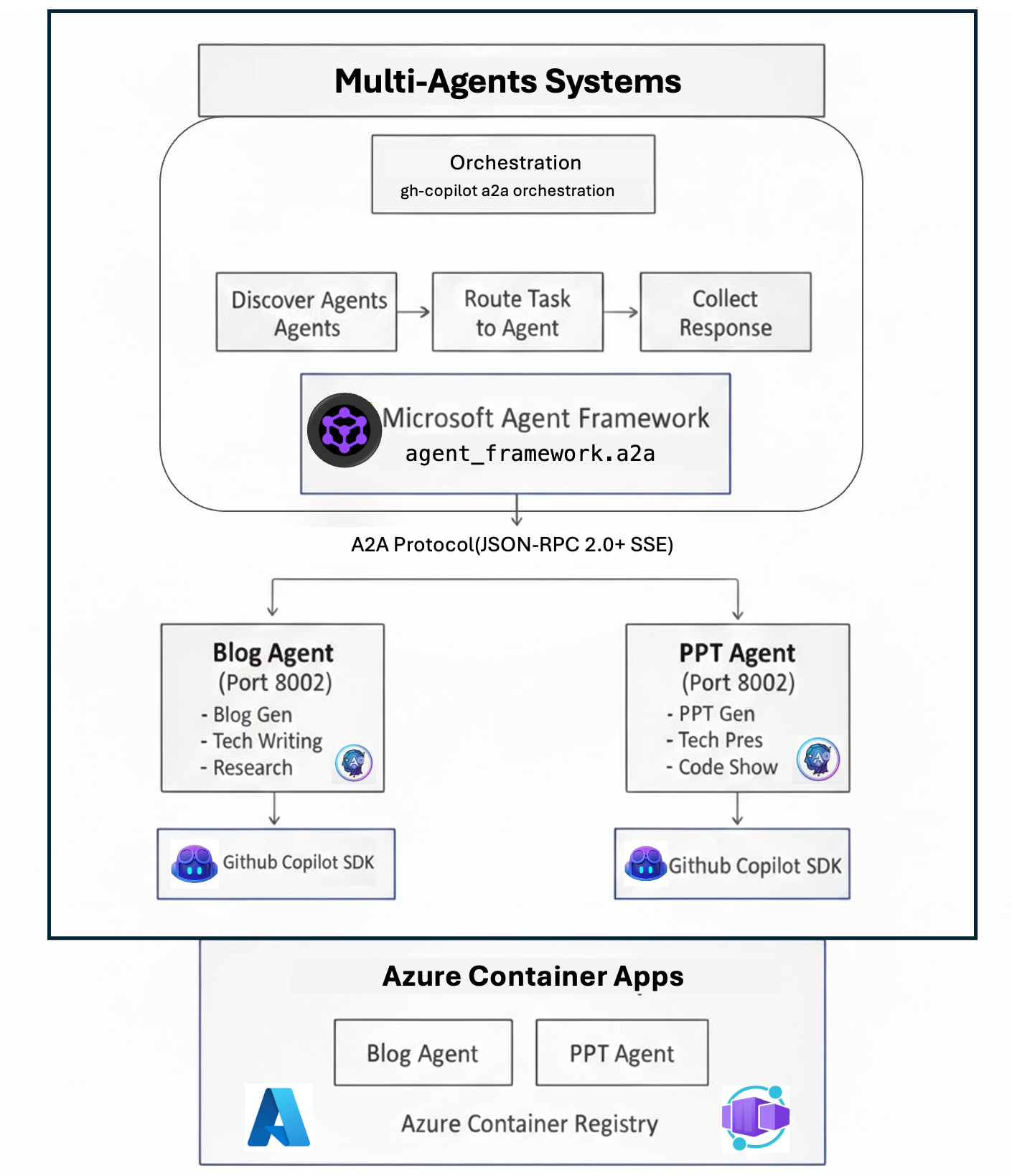 Even the most powerful technology is just a toy if it can't be deployed to production environments. This project demonstrates a complete deployment of a multi-agent system to a cloud-native platform (Azure Container Apps).