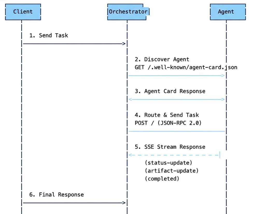 - Orchestrator receives the request and scans all agents' capability cards