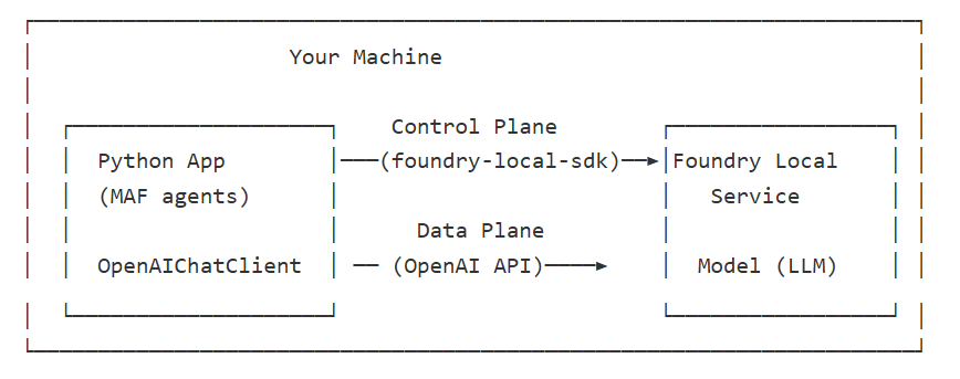 The combination is powerful: MAF handles agent logic and orchestration, while Foundry Local provides the underlying inference. No cloud dependencies, no API keys, complete data privacy:
