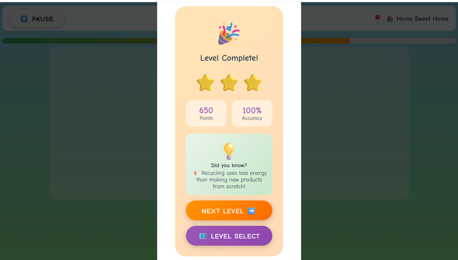 Several students explored educational games: a math challenge where players solve equations to destroy incoming meteors, a geography quiz with animated maps, and a vocabulary builder where correct definitions unlock new levels. These projects demonstrated that one-shot prompting isn't limited to entertainment, students naturally gravitated toward useful applications.