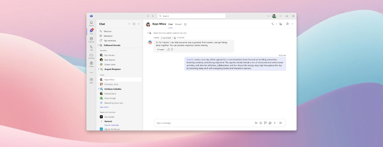 Many conversations with Copilot happen in a private, one-on-one setting. With this new capability, you will now also be able to add Copilot to Teams chats and engage with it in a group setting.