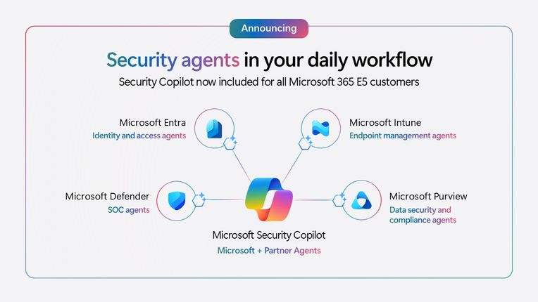 To make the agents easily accessible and help security teams get started more quickly, we are excited to announce that Security Copilot will be available to all Microsoft 365 E5 customers.