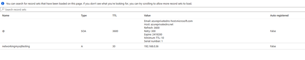 In the Private DNS zone, you can see the currently assigned IP address to the MySQL Flexible server, as shown in the following figure: