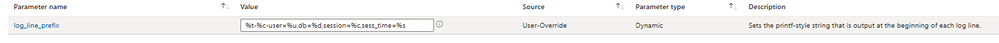 From the Server Parameters blade - set the "log_line_prefix" to include the escapes "user=%u,db=%d,session=%c,sess_time=%s" in the same sequence, in order to get the desired results