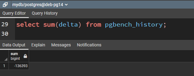 select sum(delta) from public.pgbench_history;