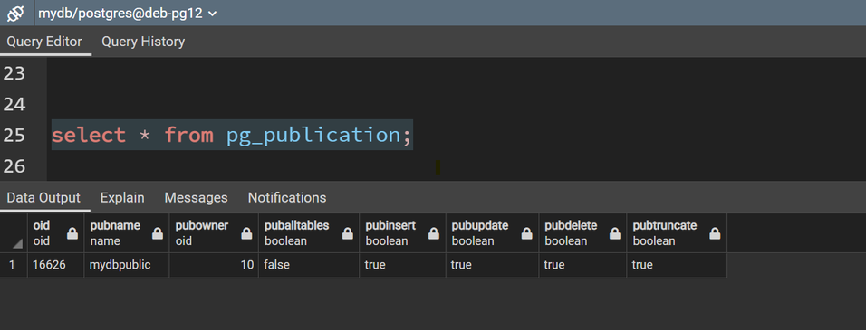 Now to the final test, did my data replicate from mydb on-prem to postgres in Azure ? Give it a couple of minutes and try running something like this on your target database: