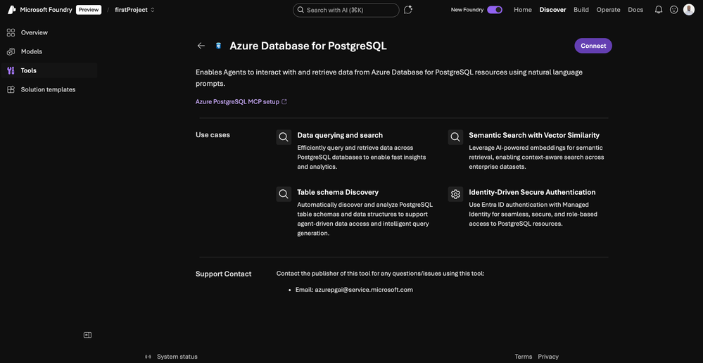 Microsoft Foundry offers a comprehensive technology stack for building AI apps and agents. But building modern agents capable of reasoning, acting, and collaborating is impossible without connection to data. To facilitate that connection, we are excited to announce a new PostgreSQL connector in Microsoft Foundry. The connector is designed using a new standard in data connectivity – Model Context Protocol (MCP). It enables Foundry agents to interact with HorizonDB securely and intelligently, using natural language instead of SQL, and leveraging Microsoft Entra ID to ensure secure connection. In addition to HorizonDB this connector also supports Azure Database for PostgreSQL (ADP).