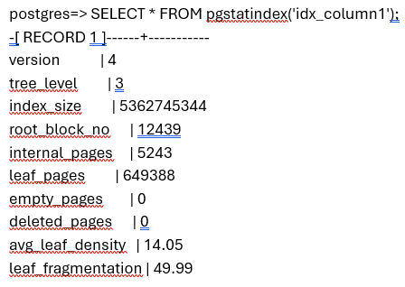 pgstatindex run on index after pg_repack run