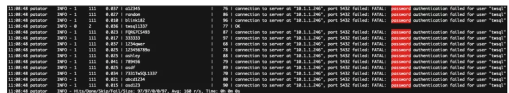 PostgreSQL brute force attack example