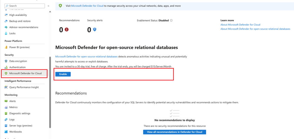 Enabling Microsoft Defender with PostgreSQL Flexible Server