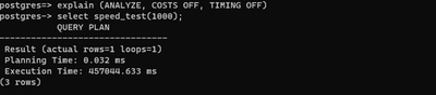 We can clearly see that the code snippet on PostgreSQL 15 is 5x faster than PostgreSQL 12. The rationale behind this is several patches that reduced the overhead of the expression's value in PL/pgSQL. PL/pgSQL was not originally designed for extensive numeric calculations like this but the need was realized as more and more developers started to use it this way, so over time there were several commits by the community that lead to this performance improvement.
