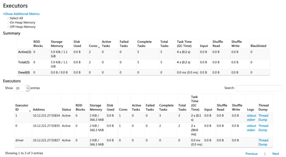- Executors: storage memory, task time (GC), shuffle metrics. High GC or frequent spills indicate memory tuning is needed.