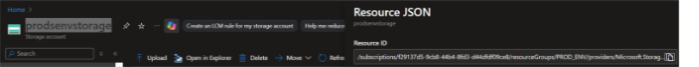 - Note: This can be found in your storage account (NorthCentral). Click on “JSON View” top right.