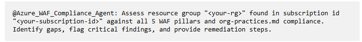 - Benefit: Agent validates Azure resources against both WAF standards AND your company-specific requirements