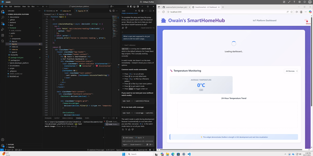 To showcase this value, I thought I would walk through an example scenario. In this scenario I want to simulate a typical modern developer workflow. Let's look at a day in the life of a developer on this hybrid platform building an IOT project using Python and React.
