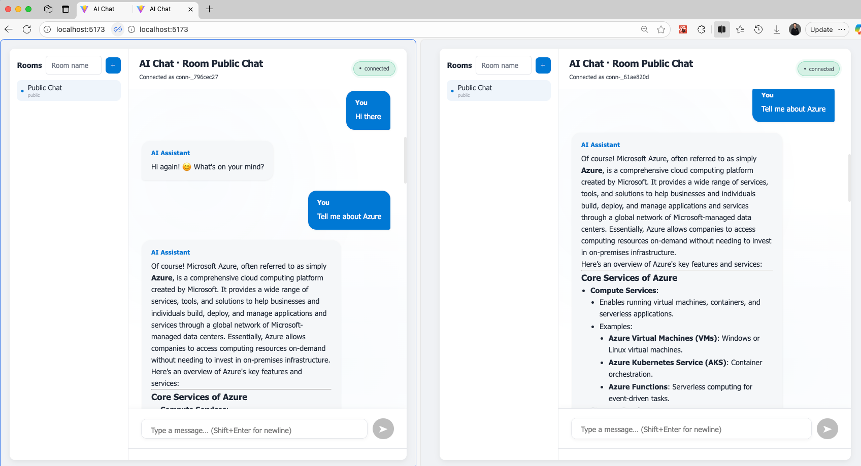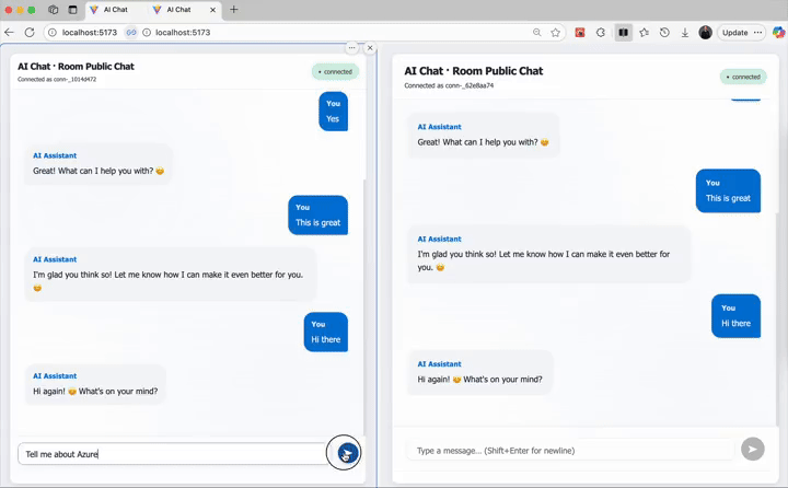You can run it entirely locally, with no Azure setup or dependencies. Everything — frontend, backend, and real-time messaging — works out of the box. This makes it perfect for experimentation, quick demos, or internal prototypes.