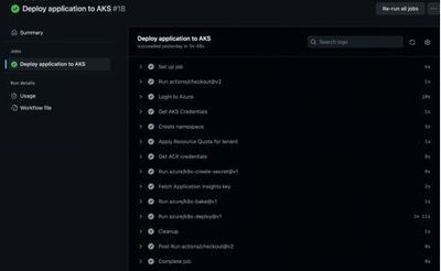Once the cluster is up and running another Github Actions workflow can either be triggered manually or integrated to an Azure function and can push the tenant specific configuration to the AKS cluster. The configuration will..