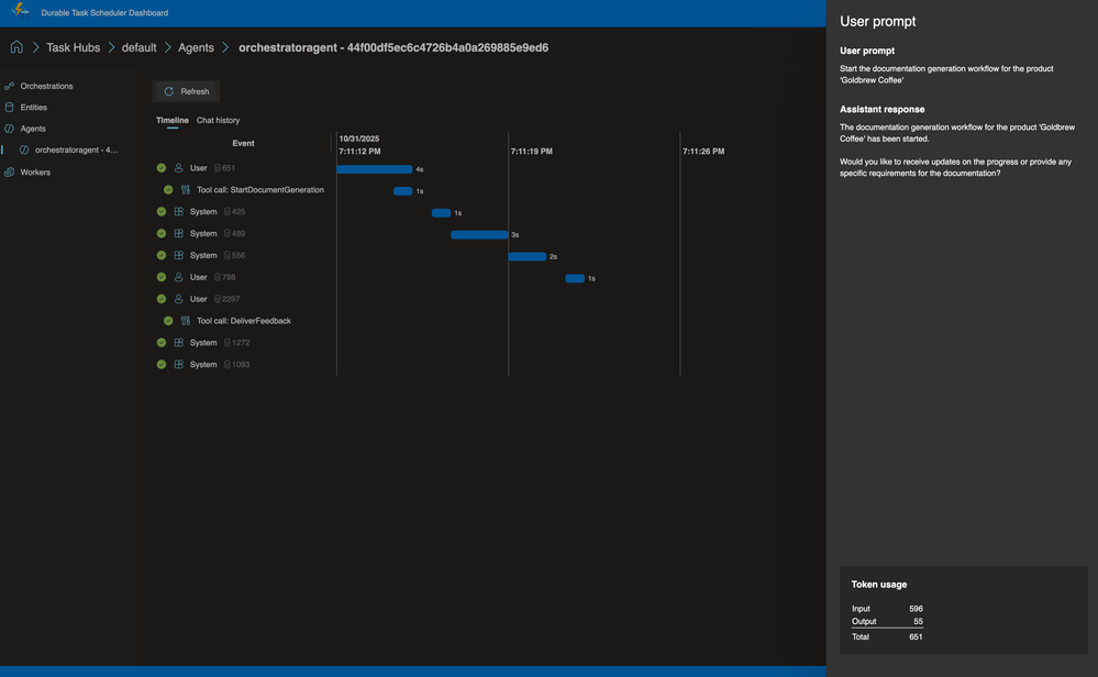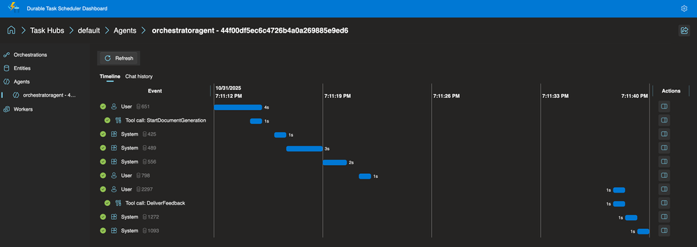 The Durable Task Scheduler dashboard provides deep visibility into your agent operations: