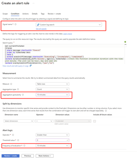 For configuring customized notification of function app, Application Insight alter with custom log search is a suitable way to achieve the goal.