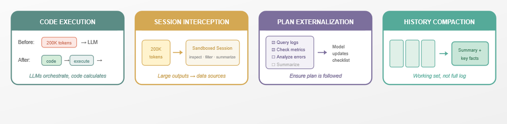 The model never sees the raw 200K tokens. It sees a reference to a session and a set of tools to interact with that session. We turned an unbounded context explosion into a bounded, interactive exploration. You have seen this with coding agents, and the idea was similar - could the model find its way through the large amount of data?