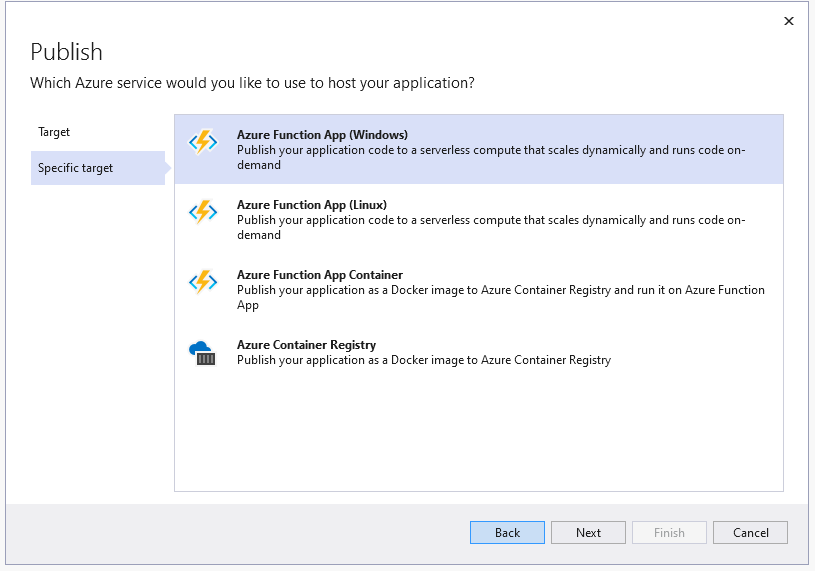 Nothing has changed with the publishing of a new Azure Function, unless you want to also want to use this as a custom connector for your Power Apps. In Visual Studio 16.9 we added support for publishing to an existing Azure API Management service instances and creating new Consumption-mode instances of Azure API Management so you can use the monitoring, security, and integration capabilities of API Management.