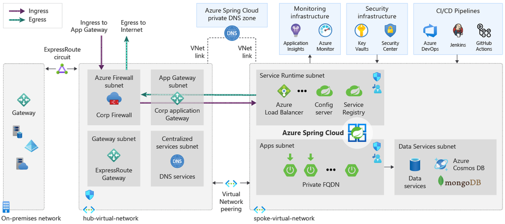 When you deploy a collection of Azure Resources, including Azure Spring Cloud, in your private network and interconnect these resources with on-premises systems, you can be faced with multiple questions such as: