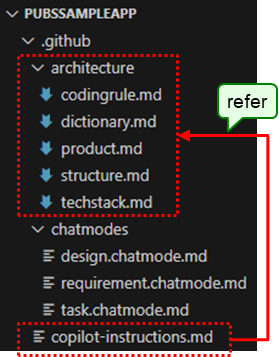 If the LLM does not properly reference each file, you may explicitly add these architecture documents to the context. Another approach is to instruct the LLM to review these files in the **chat mode settings**, which will be described later.