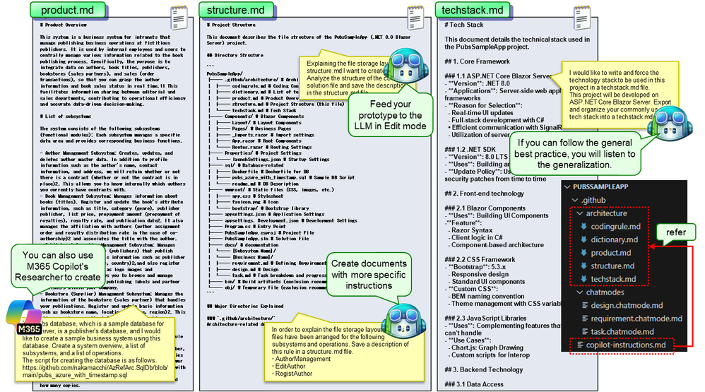 Writing all of this from scratch can be challenging. A practical approach is to create template information with the help of Copilot and then refine it. Specifically, you can: