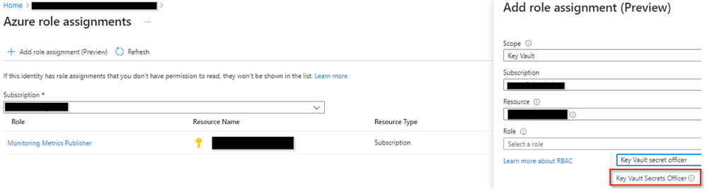 1. Key Vault secret officer role on the key vault (when using RBAC based access model)