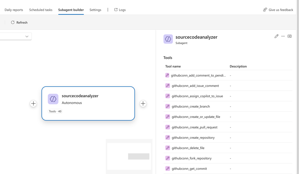 I created a sub-agent for analyzing source code using GitHub mcp tools. this lets SRE Agent understand not just Azure resources, but also the Bicep and source code files that created them.