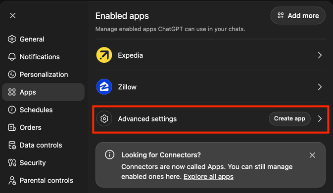 - Turn on Developer mode in ChatGPT: Go to Settings → Connectors → Advanced → Developer mode
