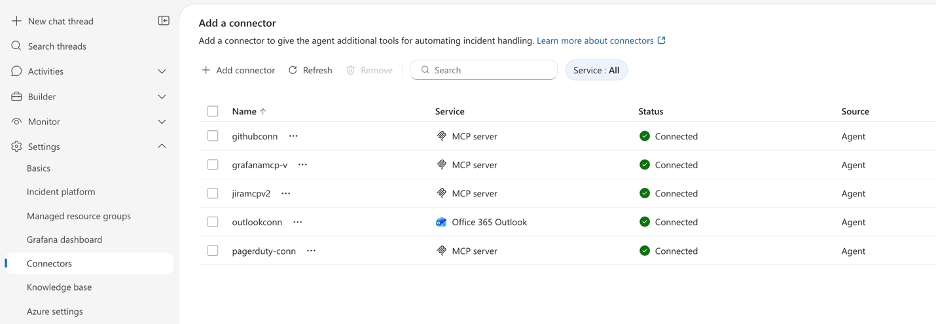 SRE Agent natively integrates with PagerDuty, ServiceNow, and Azure Monitor. But your team might use Jira for incident tracking. Grafana for dashboards. Loki for logs. Prometheus for metrics.