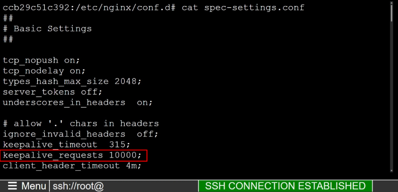 We can see that the current value for keepalive_requests is set to 10000