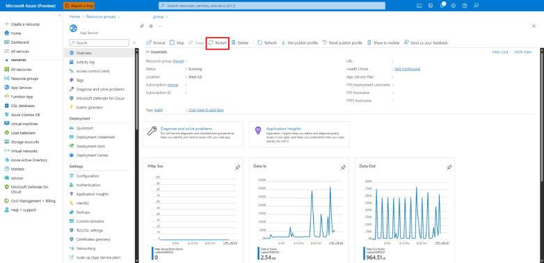 Step 4: Go to overview page of your WordPress App Service and click on restart