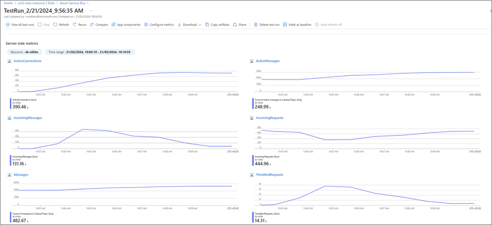 - In the monitoring section, add the Service Bus namespace that you’re testing to view the metrics during the test.