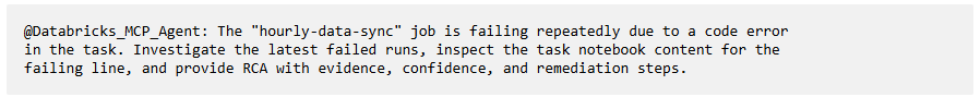 Automate Databricks compliance and incident response using the Model Context Protocol - an open standard for AI agents to call external tools and APIs.