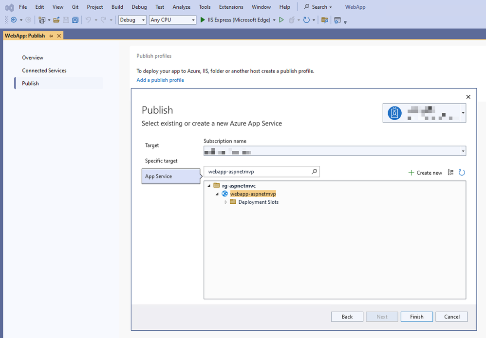 If necessary, you can directly provision Azure App Service instance within Visual Studio