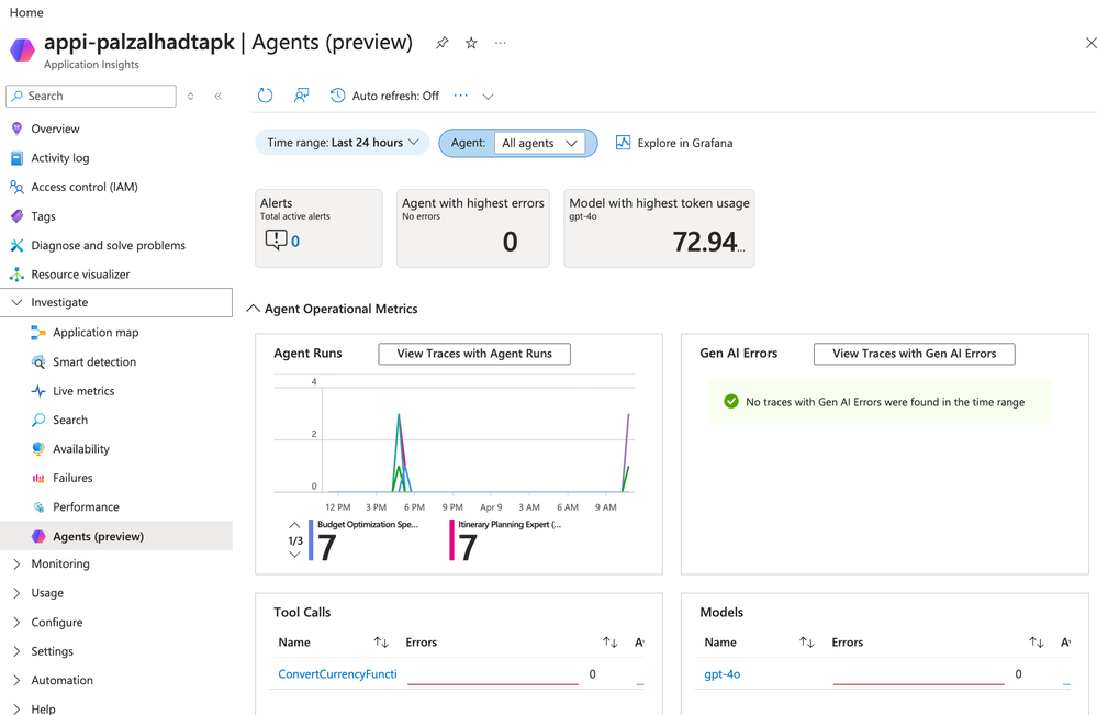 - App Insights Agents (Preview) view: Documentation