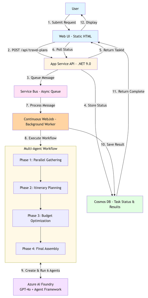 🔗 GitHub Repository: https://github.com/Azure-Samples/app-service-maf-workflow-travel-agent-dotnet