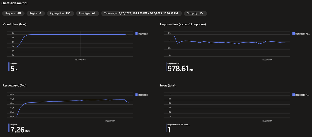 - Using the Load Testing feature within Azure Functions, built on Azure Load Testing - 20 ALT engines, 250 VUH per instance.