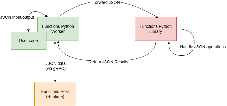 JSON serialization is fundamental to many serverless workloads — from processing HTTP payloads to streaming events. Every Azure Function in Python that communicates via HTTP or interacts with event-based services such as Event Hubs, Service Bus, or Cosmos DB involves reading and writing JSON. JSON handling is split between the Azure Functions Python Worker and the Azure Functions Python Library. The library is responsible for serializing Python objects to JSON and deserializing JSON inputs into Python objects, while the worker simply transports the raw data to and from the function. This separation means that JSON processing is concentrated in the library, making it a key factor for function performance, as every input and output must pass through these conversions.