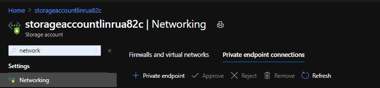 4 Go to portal storage account, in blade Networking, select Tab “Private endpoints connections”.