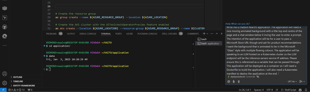 In all seriousness I have been impressed at the speed my development was accelerated using KAITO and Copliot. I was able to create all these resources in a very short time period, especially impressive when you compare how long a project like this, running a local fine tuned LLM with optimized GPU's and a chatbot application would have taken to develop from scratch. As always I remind myself that during this exercise primarily using GPT 4o (not even 4o1!) that LLM's ability to reason and solve increasingly more complex tasks will only get better from here.