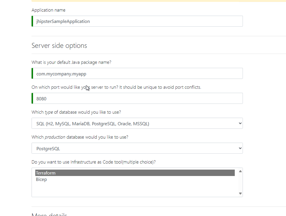 Generate a full-stack Java project using JHipster Online, no local setup needed. Deploy the project easily with Terraform or Bicep in just a few steps.