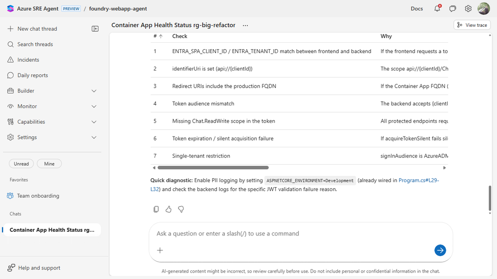 That answer was useful because it was grounded in the actual resource, not in generic advice about Container Apps.