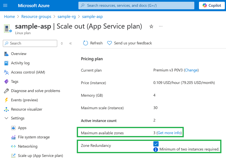 With a recently completed platform update in May, customers now enjoy the 99.99% Availability Zone (AZ) SLA when running on only two instances (instead of three)! As part of this update more parts of the App Service footprint have enabled AZ support “in place”, which means many existing app service plans can now also use Availability Zones.