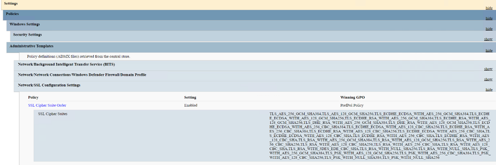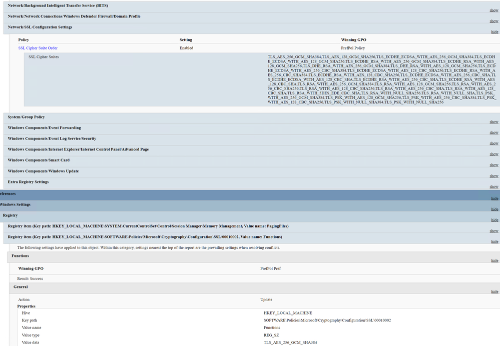 Suffice to say, today’s message is, “You should never* target a group policy registry location (including “Windows Settings\Local Policies\Security Options” settings) with a Preference item unless you want instability and an administrative nightmare.” We’ll get to that little disclaimer later. To illustrate this, we will go with Cipher Suite Ordering as an example, since a misconfiguration here can completely stop TLS connections to production services.