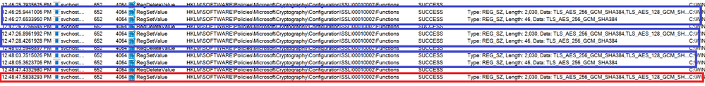 GPSVC(28c.fe0) 12:46:25:916 SetRegistryValue: Functions => TLS_AES_256_GCM_SHA384,TLS_AES_128_GCM_SHA256,TLS_ECDHE_ECDSA_WITH_AES_256_GCM_SHA384, <snip>... [OK]
