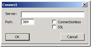 I use the LDP.EXE utility in Windows 2008 to reproduce all of the scenarios that follow. This tool is a client GUI to connect, bind and administrate Active Directory. You also want to download Network Monitor if you are troubleshooting an LDAP problem or want to follow along in your own network traces.